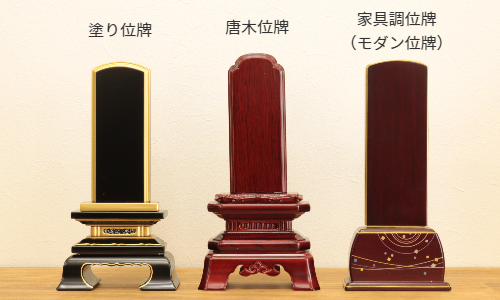 昔ながらの「塗り位牌」や「唐木位牌」の他、家具調位牌(モダン位牌)と呼ばれる現代ならではのお位牌もあります。お仏壇や既にあるお位牌の雰囲気や、お好みに合わせてご決定下さい。
