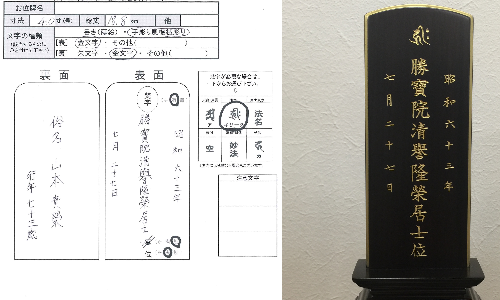 文字入れの例をご参照頂くか、菩提寺様のご指導、もしくはご自宅に既にあるお位牌の文字レイアウトをご参照のうえ、文字入れ内容を決めていきます。