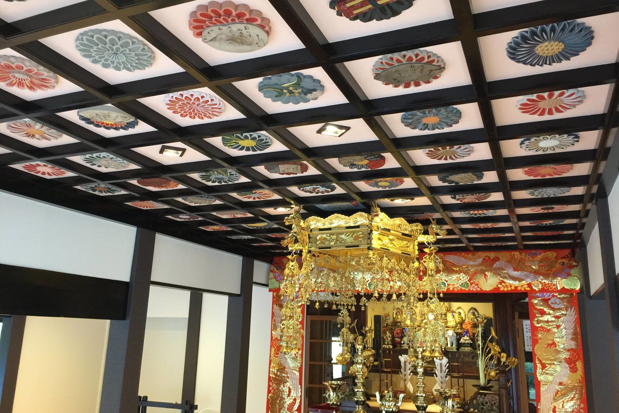 本堂改築に伴う格天井の彫刻修復事例
