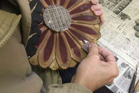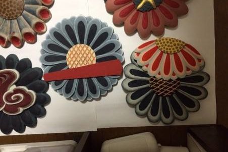 古い彫刻を修復し、改装後の本堂天井に取り付けることになりました。