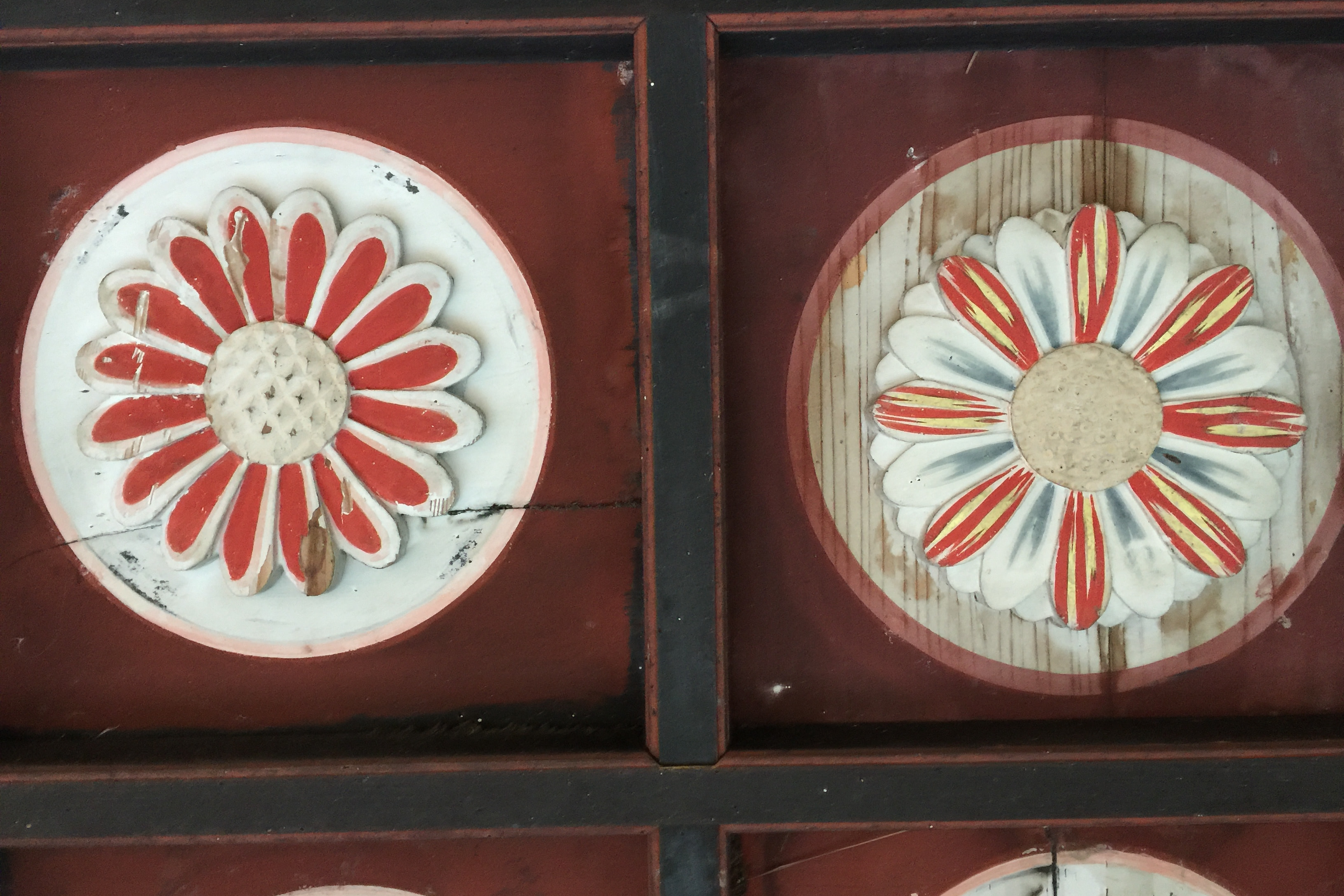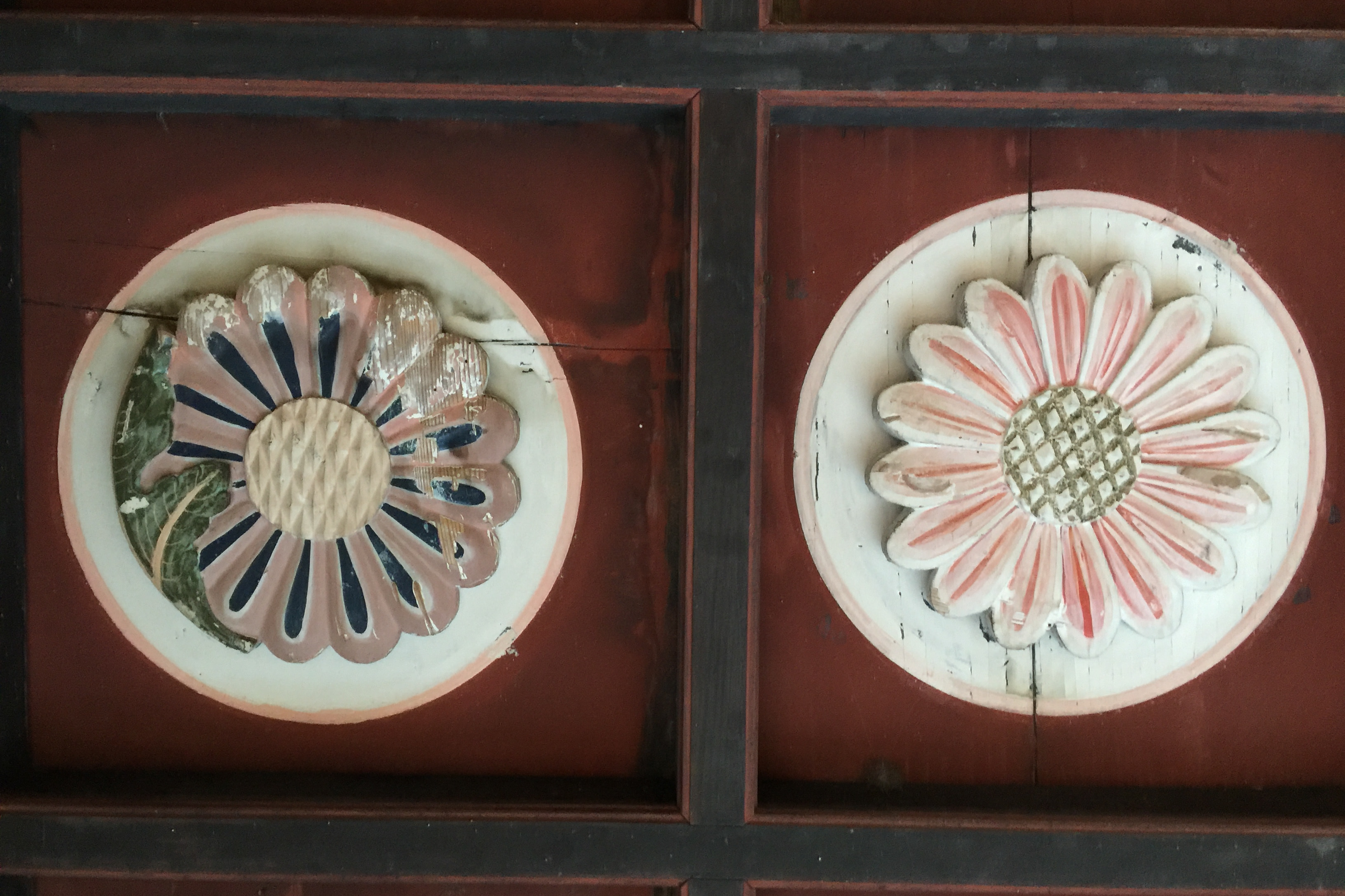 彫刻の彩色が今にも剥がれ落ちそうになっていたり、既に剥がれ落ちていたりしました。