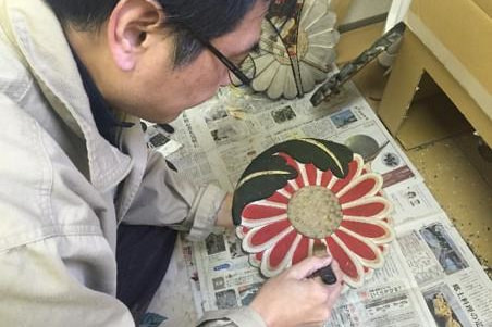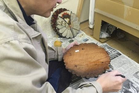 古い彫刻を修復し、改装後の本堂天井に取り付けることになりました。