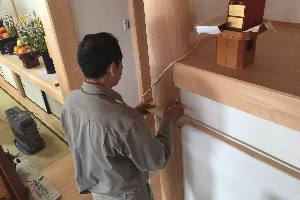 多くの場合、須弥壇は建物と接する取り付け工事となります。その為、その接する建物の箇所(主に来迎柱・壁・框)の形状と寸法をよく調査する必要があります。