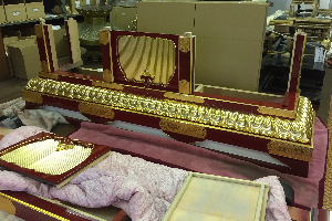 塗りを終え、金箔押しを行ない、錺金具を取り付けたら、いよいよ納品となります。