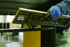お仏壇を丁寧に解体し、リメイク後に再利用する木材とそれ以外の木材とを分けていきます。